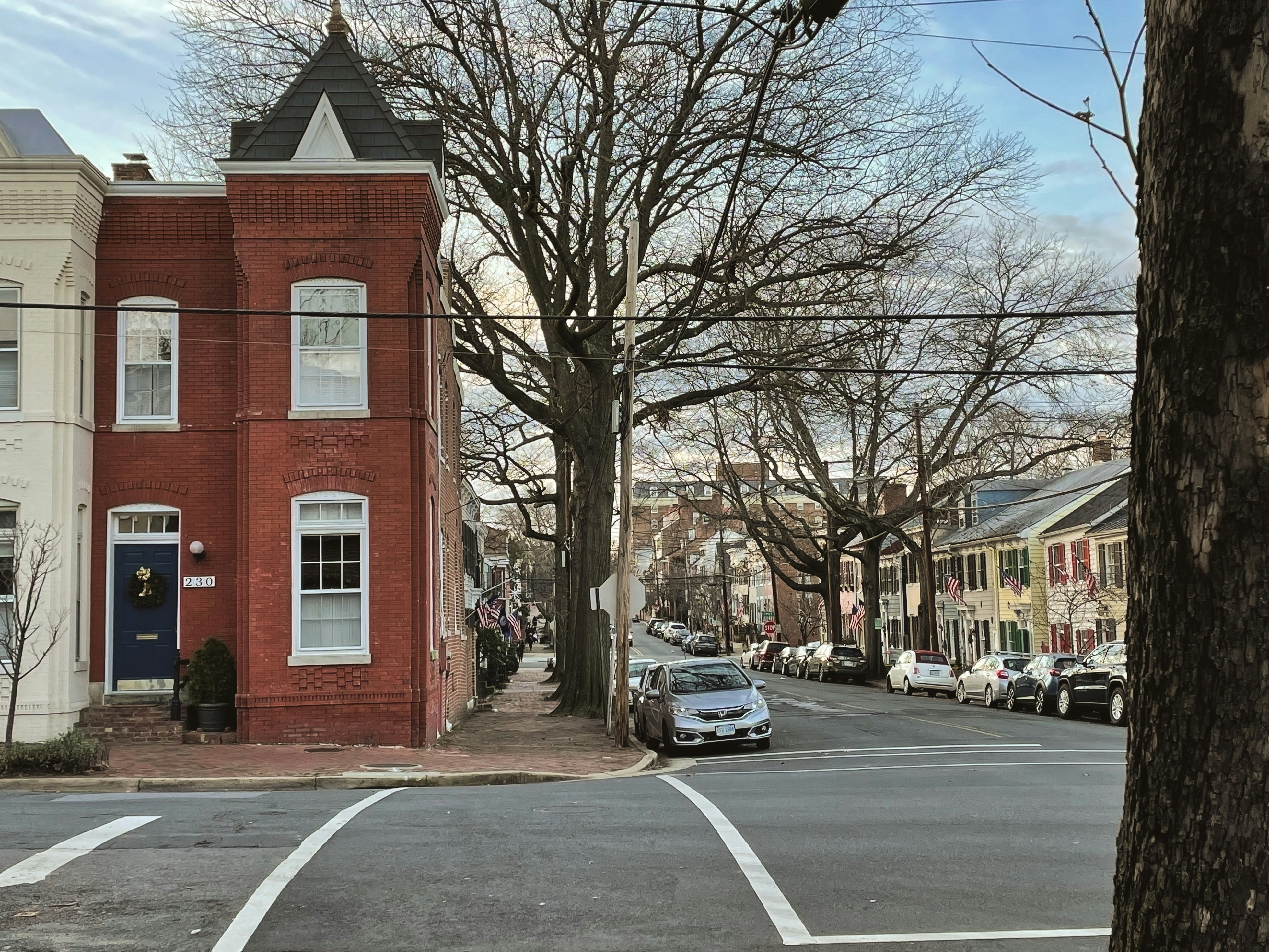 It’s only 7 feet wide, but it’s 2 stories. The house is neatly lodged in between surrounding houses of a more normal and spite-free size. The original owner had it built to block off the alley and keep out horse-drawn wagons.