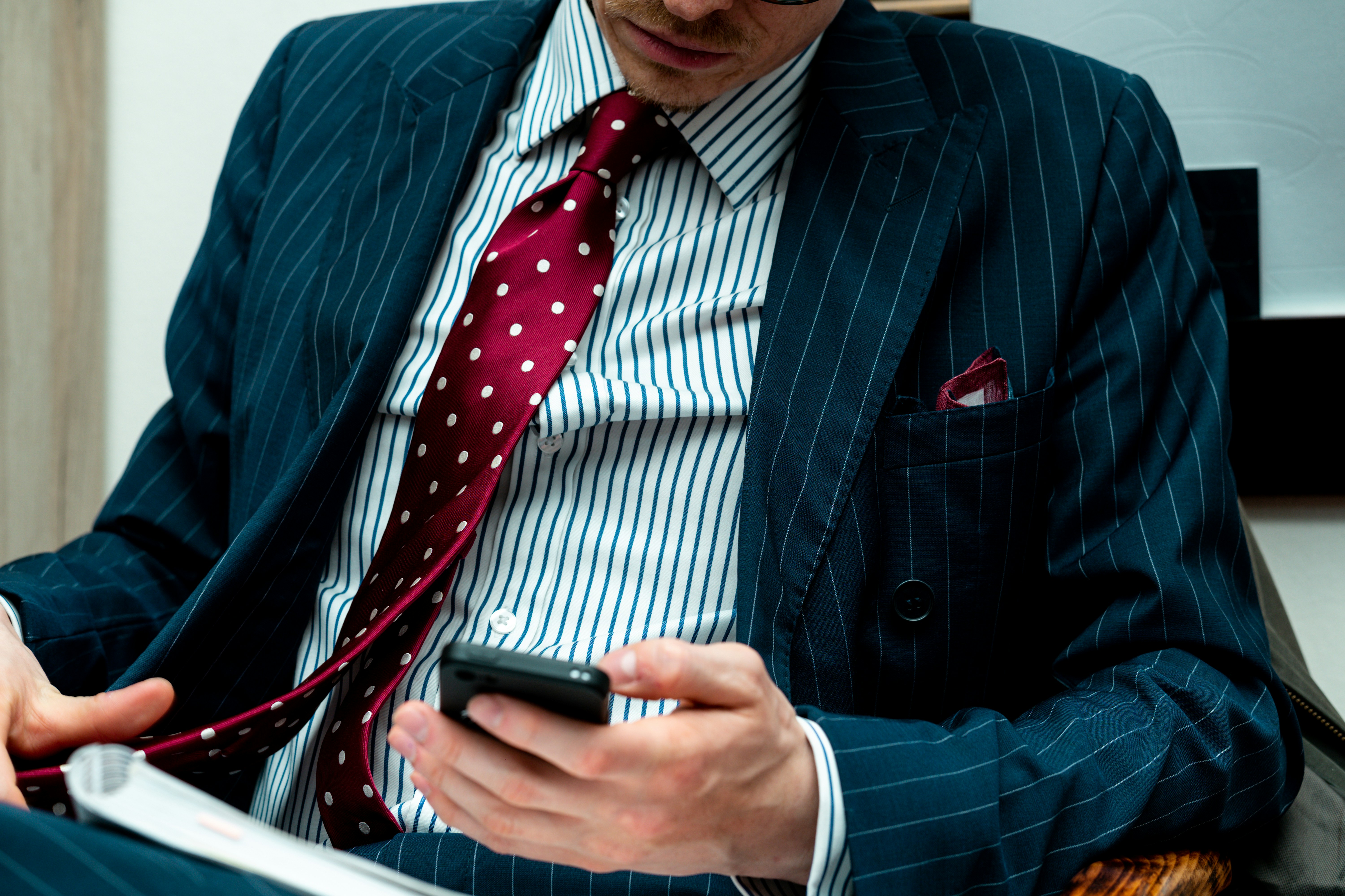 If you work in a business casual environment, then you’ll have more flexibility to experiment with different styles of knit ties. Start by pairing a smart blazer or tweed jacket with chinos. From there, you’ll have a wide range of options to look dapper at work.